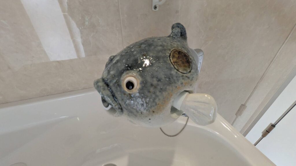 とのうらふぐ太郎が待っています。(トイレ洗面の蛇口)